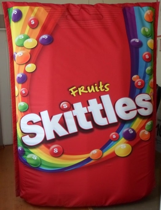 For our customer Wrigley we have made inflatable skittles. These skittles are approx. 2 m high and are printed with high-quality sublimation printing.
