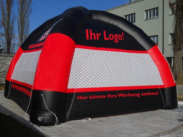 Inflatable tents in a simple form can be round or angular. They generally have four to six legs and large, effective advertising surfaces. They are set up quick and easy. Inflation approx. 3 – 8 minutes.