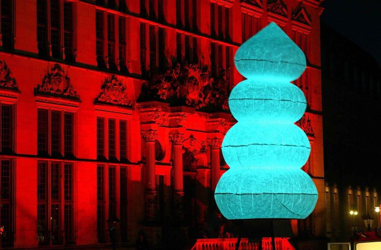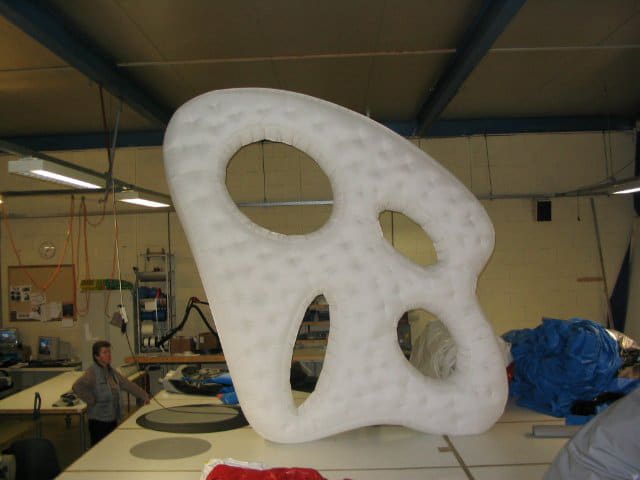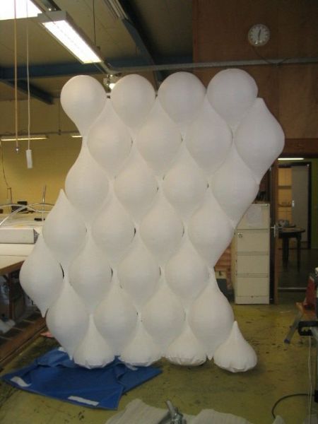 These inflatable decor items can be constructed by one or two workers without major problems. After the performance or production the space saving design allows storage for future use.
