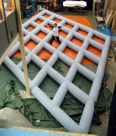 Inflatable modules are increasingly used in stage construction for theatre or television productions. In this field, mobile yet imposing modules are in demand.