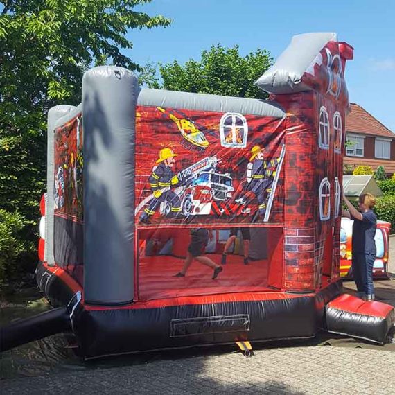 We ordered a fire department bouncy castle to lease it. The bouncy castle is a combination of a bouncy castle and a slide. The dimensions are 6x5m.