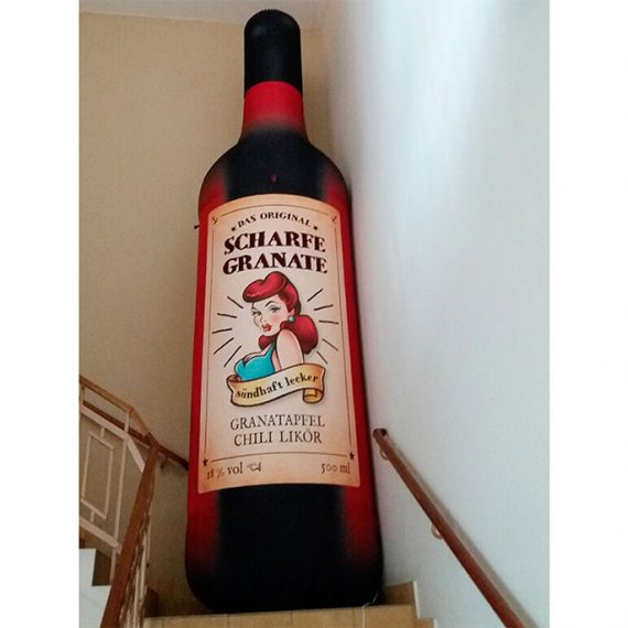 We made a inflatable pomegranate chili liqueur bottle for our customer.