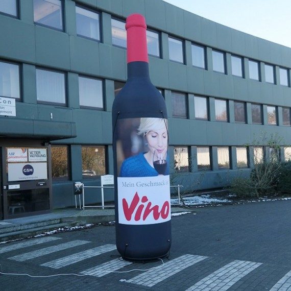 This inflatable wine bottle is approx. 5 m high and was produced for Vino GmbH. The bottle is rather simple and captivates with its great label. This bottle is also … lesen Sie mehr