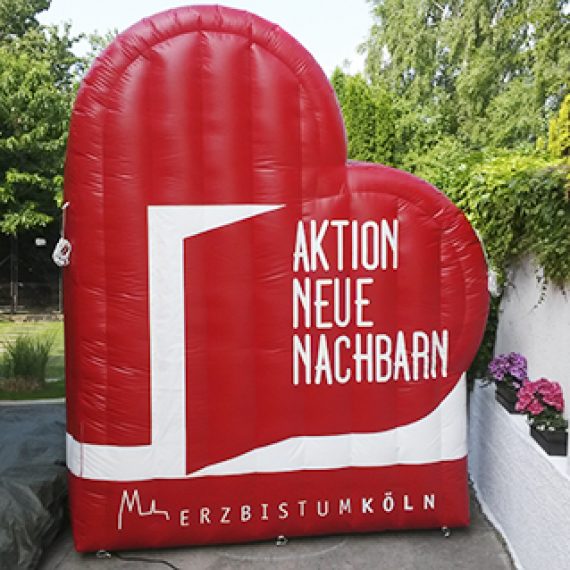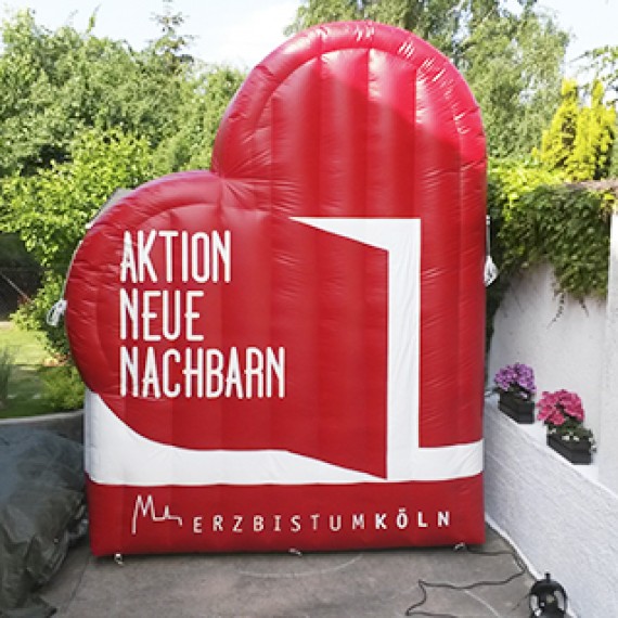 An inflatable heart for the campaign New neighbors from the Archbishopric of Cologne makes the hearts beat faster. With a height of 4 meters and a width of 3 meters, … lesen Sie mehr