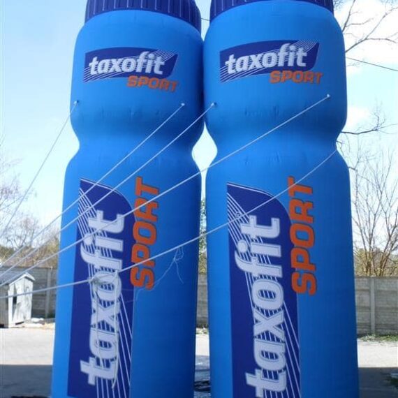 Two inflatable taxofit bottles are used at various events and they found their first use in a marathon. Its size is approx. 5 m.