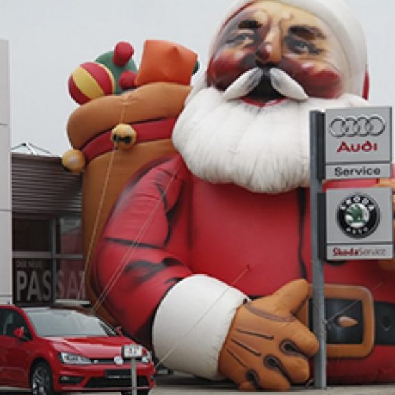 From now on, our inflatable giant Santa Claus at Autohaus Hoppe greets all the drivers who pass the local car dealership in Ganderkesee. It is about 5 – 6 m … lesen Sie mehr