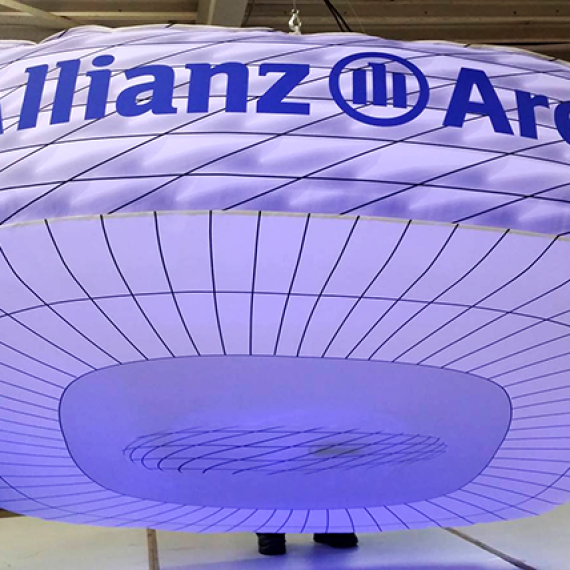 This inflatable alliance arena is lit from the inside with LED light and changes the colors from blue to red to green. The miniature replica of the Allianz Arena … lesen Sie mehr