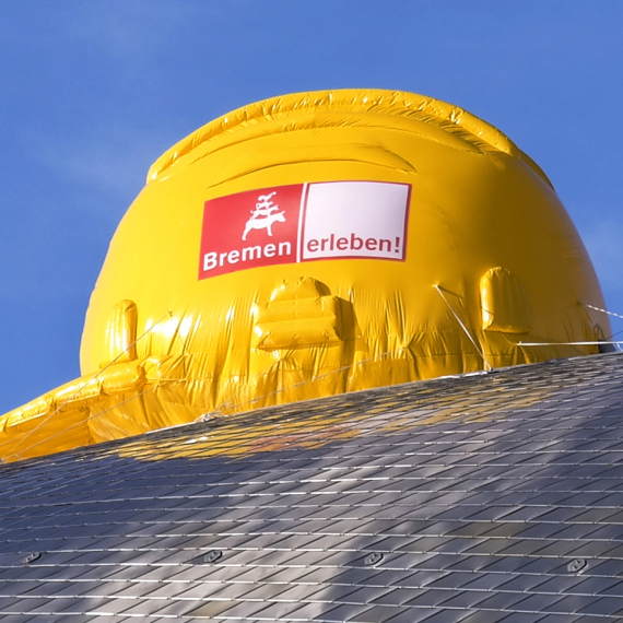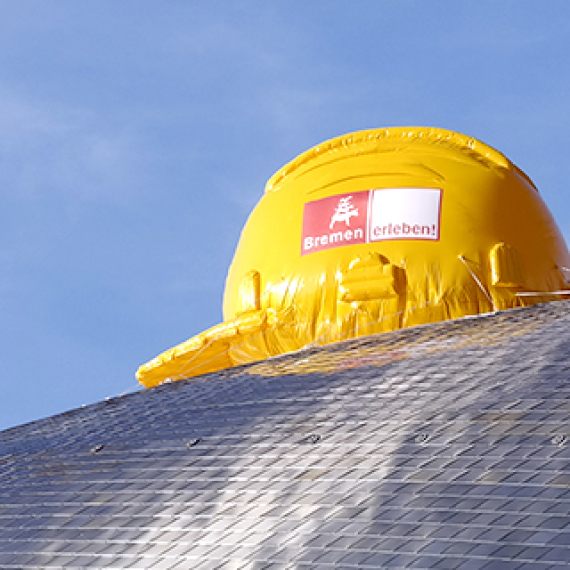 An inflatable construction helmet is used by the Universum Bremen as an announcement for the rebuilding measures beginning on November 3rd 2015. The construction helmet is illuminated from the inside … lesen Sie mehr