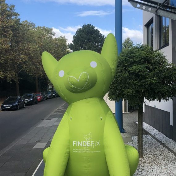 For the Deutscher Tierschutzbund e.V. we have recreated the mascot “Findefix” as an inflatable figure. This is approx. 4.00 m high and is made of polyester 300 g/m².