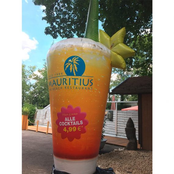For “Mauritius” we produced an inflatable cocktail glass in 3m height. Material: PVC 300 gr/qm with permanent blower and lighting on the stand.