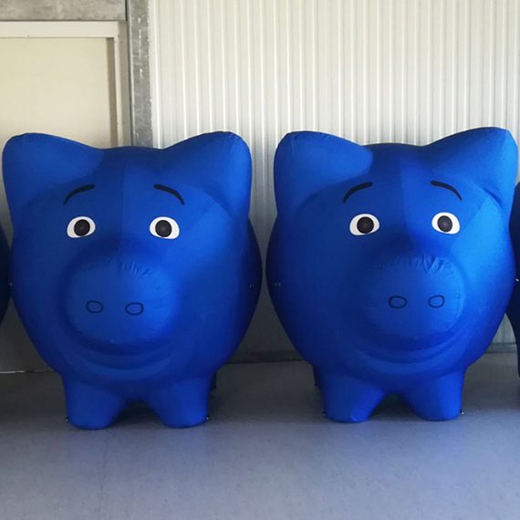 We have produced four inflatable pigs for the DG-Verlag. The airtight pigs are intended as car roof advertising. Material inside: PVC, Outside: Polyester.